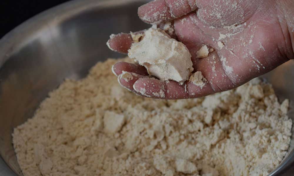 - Rub the ghee into dry ingredients well. This process may take 2-3 minutes.