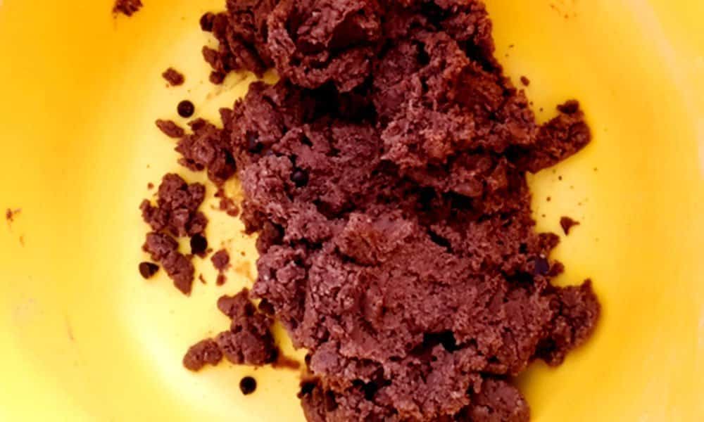Now add all-purpose flour, baking soda, cocoa powder, and choco chips. Incorporate the dry ingredients into wet ingredients well.