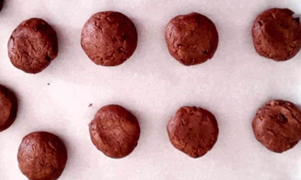 - Grease the baking tray or place a parchment paper. Place the balls of dough on a baking tray. Space the cookies about 2 inches apart on the tray as these will expand when you bake.