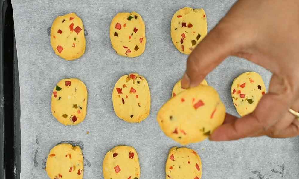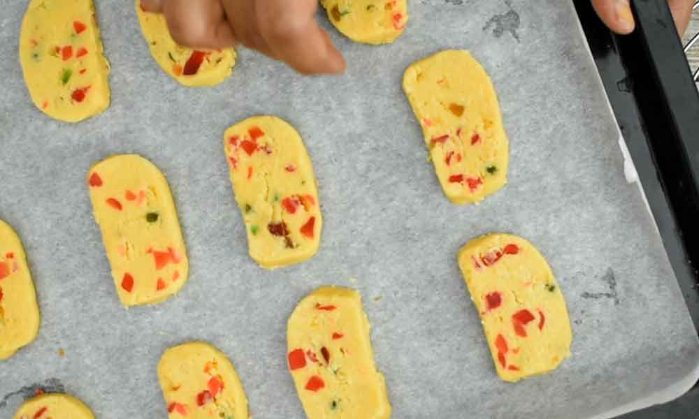 - Arrange all the cookies on a baking tray by leaving some space in-between.