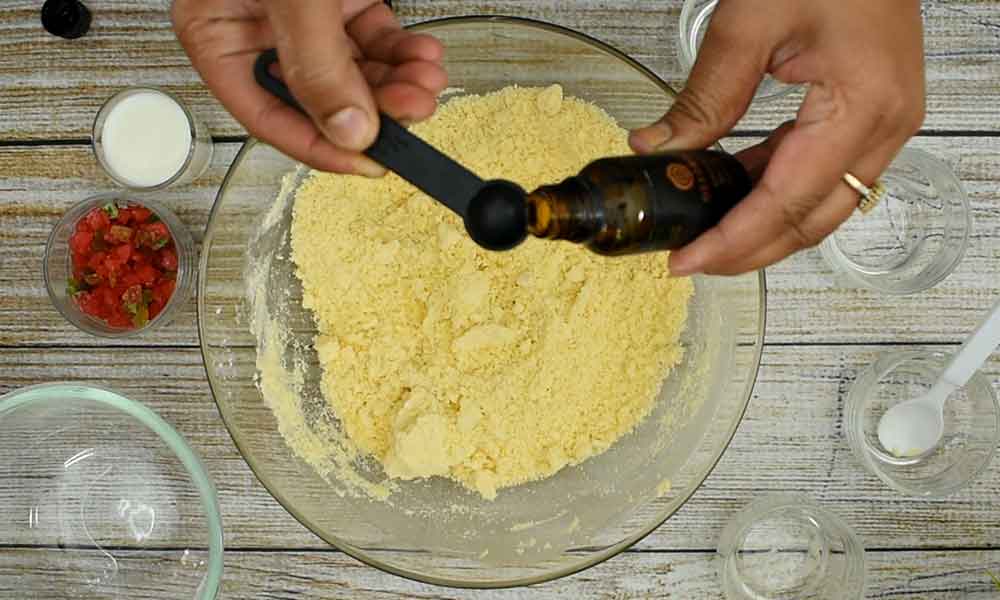 To enhance the flavor of the cookies, I have added ¼ tsp of Ossoro’s Karachi Biscuit flavor. Along with it, add 2 tbsp of milk. If you feel the dough is soft enough, skip adding milk.