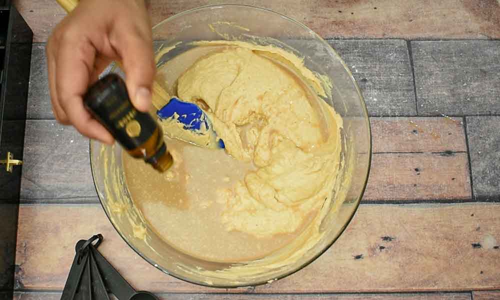 - Mix dry and wet ingredients and start adding masala chai to the mixture.