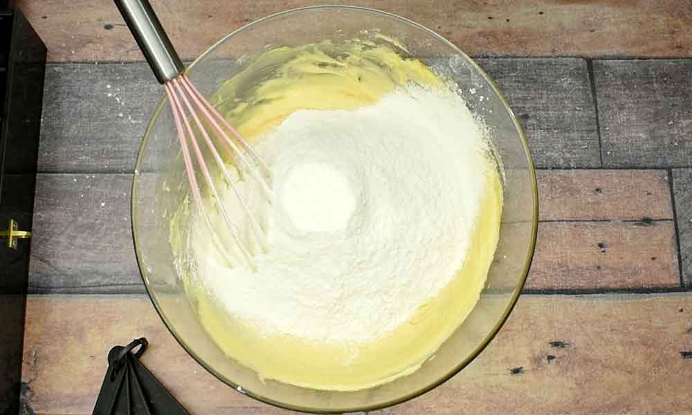 In a bowl take 120 gm unsalted butter. The butter should be soft enough as it will be easy to whisk it. Add 60 gm powdered sugar while whisking the butter. Whisk both together until the mixture is light and fluffy.