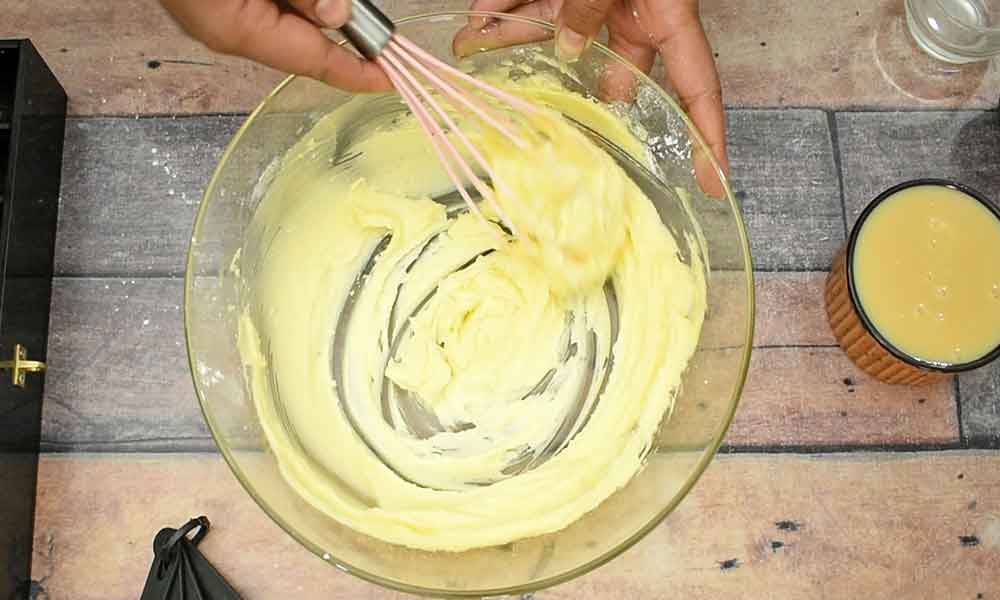 Add 200 gm condensed milk. Continue to whisk and combine everything.