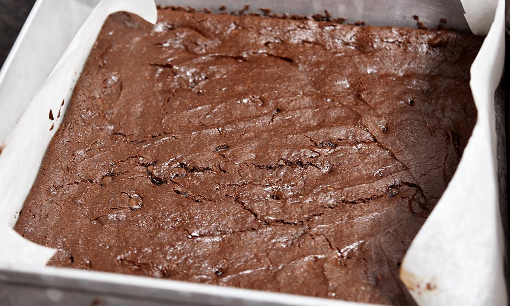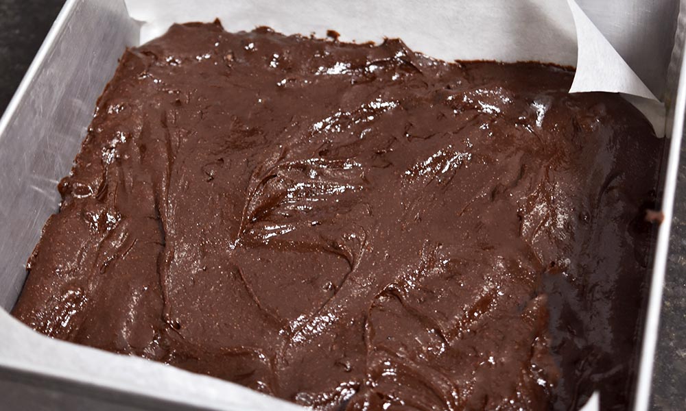 Bake this brownie batter in a preheated oven at 180 °C for 20 minutes.