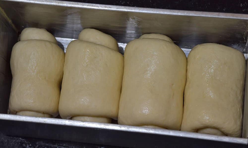 Place all the shaped dough portions into 9x4x4 inches loaf tin and cover with cling wrap. Keep the tin in the refrigerator overnight or for a minimum of 12 hrs.