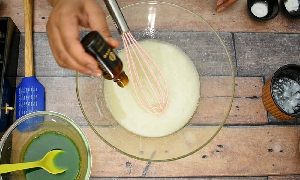 Add 2 drops of edible green color to enhance the color of the cake but it is totally optional. If you don’t want the bright green color of your paan cake, you can skip adding color.