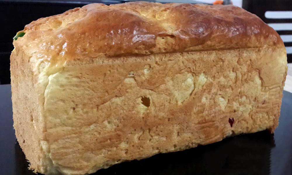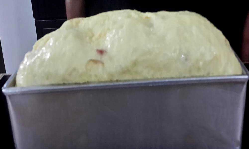 Milk powder will increase the sweetness of the Eggless Tutti Frutti Bread. You can also use sugar to make the bread sweeter, however increasing the sugar content might increase the bread fermentation time. If the bread takes the time to ferment, you must give it time.