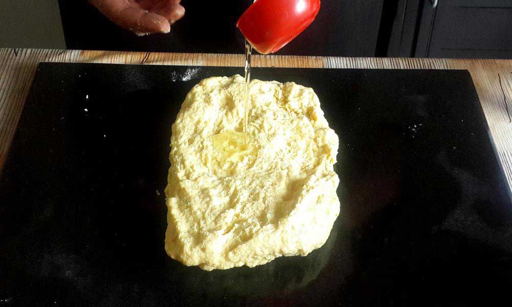 - After the first rise, take the dough on a surface, lightly dusted with flour. Punch the dough to release the air in the dough (carbon-di-oxide).